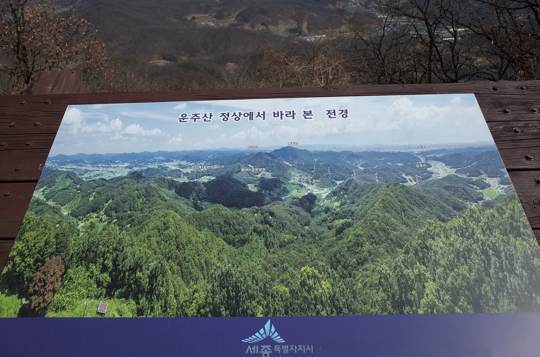운주산 정상에 오르면 안내도에 보이는것과 같이 북쪽으로는 천안, 남쪽으로는 세종 동쪽으로는 청주까지 볼 수 있는 위치에 있다.