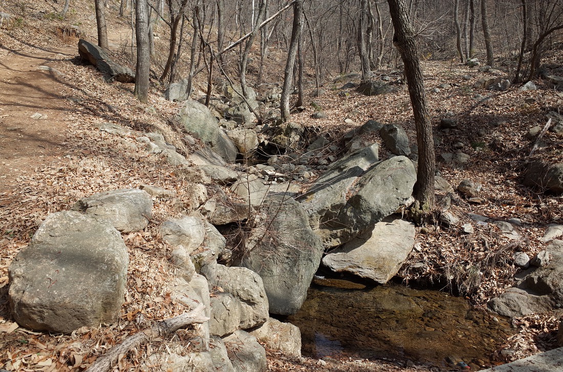 절 왼쪽으로 난 등산로를 따라 본격적으로 오르기 시작하는데 겨우내 얼었던 계곡물이 녹아내려 졸졸졸~~ 소리를 내며 산 아래로 흐르고 있었다. 물소리를 들으며 걸으니 상쾌함이 배가 되는듯 했다.