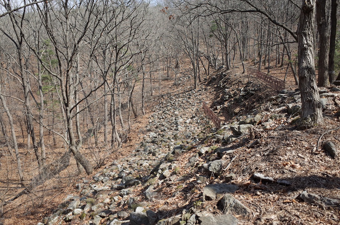 정상쪽으로 오르는길에는 무너진 성곽터가 그대로 보인다. 이 높은곳까지 무거운 돌덩이들을 운반해서 성곽을 쌓았을것을 생각하니 대단하다는것밖에 떠오르질 않는다.